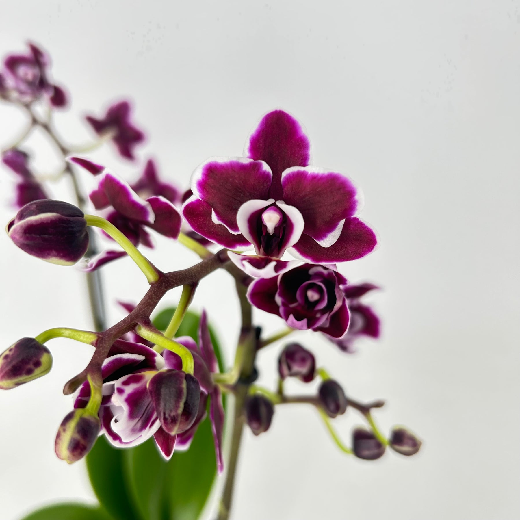 Phalaenopsis Hybriden sind mit die dankbarsten Orchideen. Sie blühen extrem lange und kommen auch leicht wieder zur Blüte. Hier haben wir sehr schöne Hybriden mit ZWEI Rispen (im 9er Topf)!